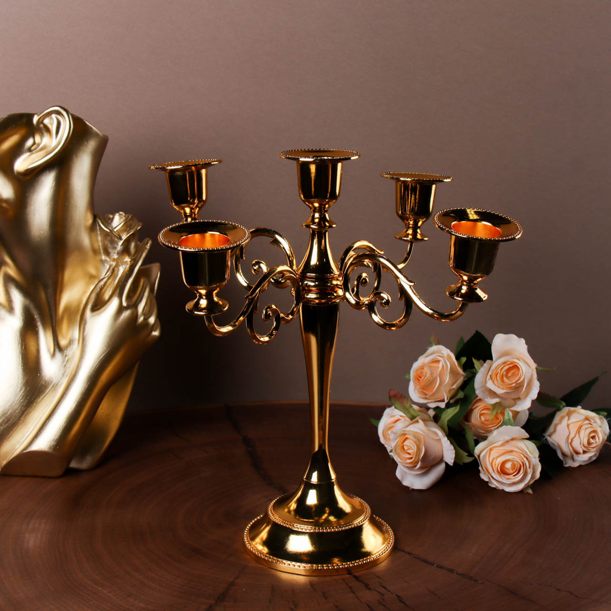 Подсвечник на 5 свечей 25 см золото / 6305G /уп 30/