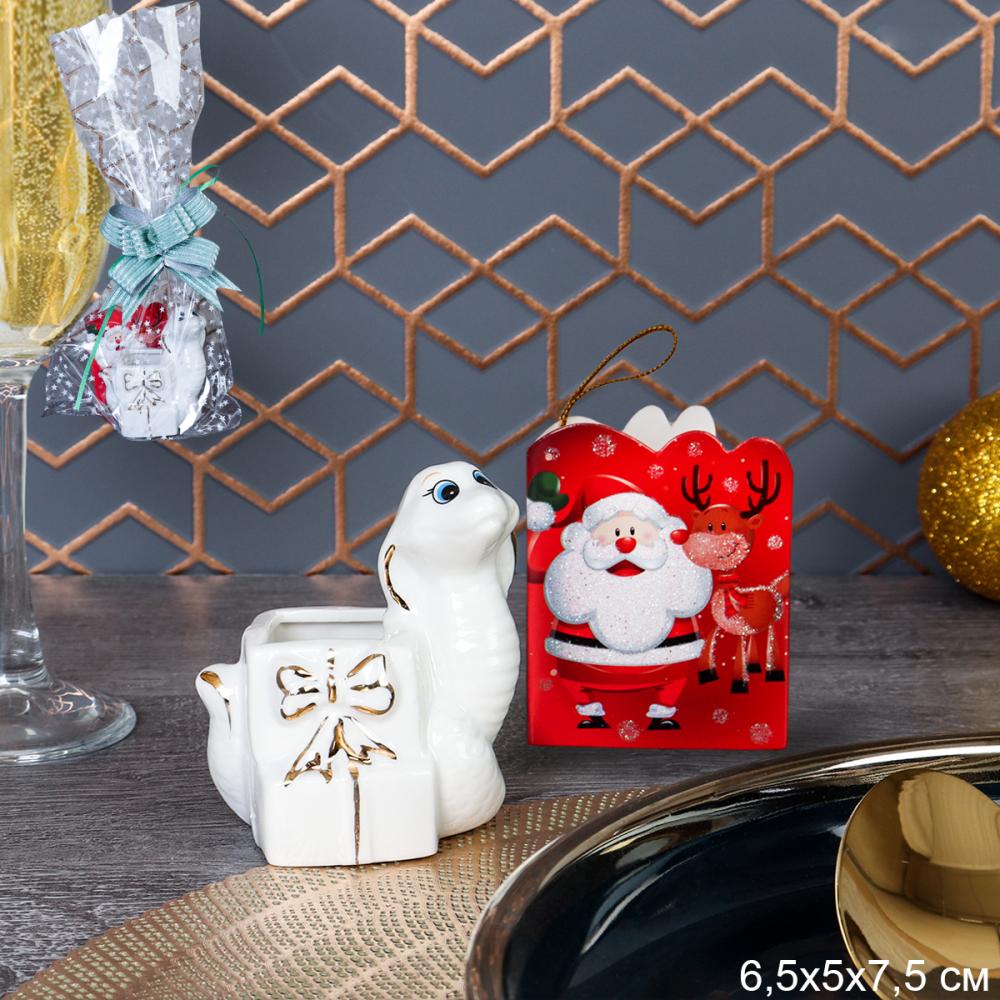 Набор подарочный подставка для зубочисток Змейка Символ года 2025 + открытка Акция / B5319 /уп 144/ костяной фарфор