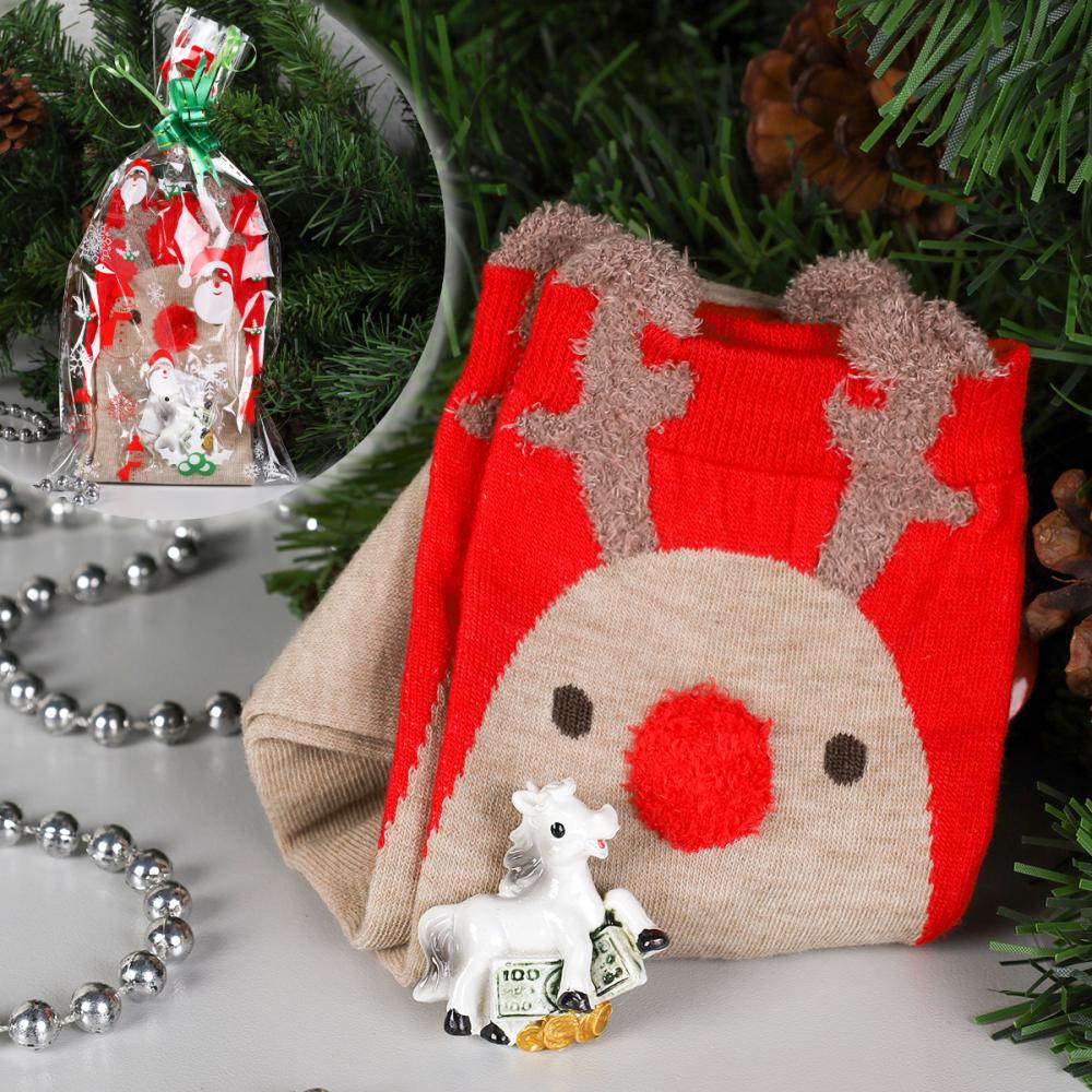 Подарочный набор Новогодний № 27 / Носки + магнитик ЛОШАДЬ /