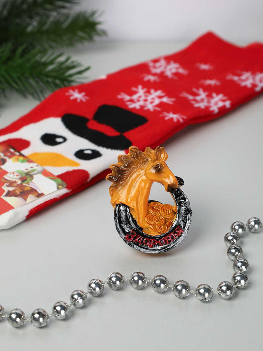Подарочный набор Новогодний № 28 /25339-1/ Носки + магнитик ЛОШАДЬ /