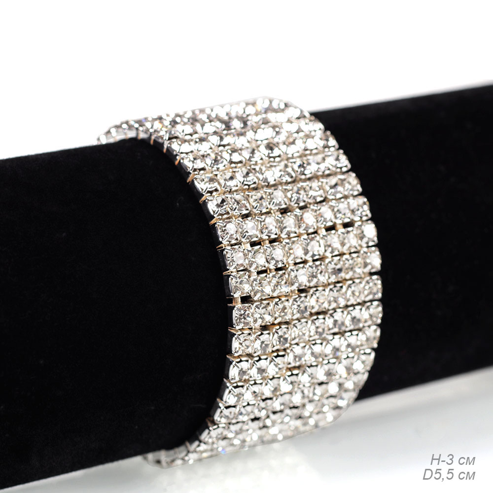 Браслет со стразами 8 рядов 3 см Белый / 8 /уп 60/серебро
