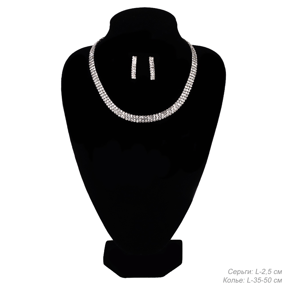 Колье со стразами и серьги гвоздики 2,5 см / 6921 /уп 24/серебро