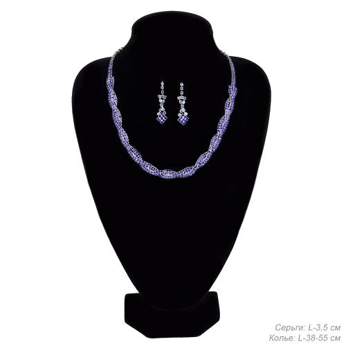 Колье со стразами и серьги гвоздики 3,5 см/ 6532 /уп 6/серебро