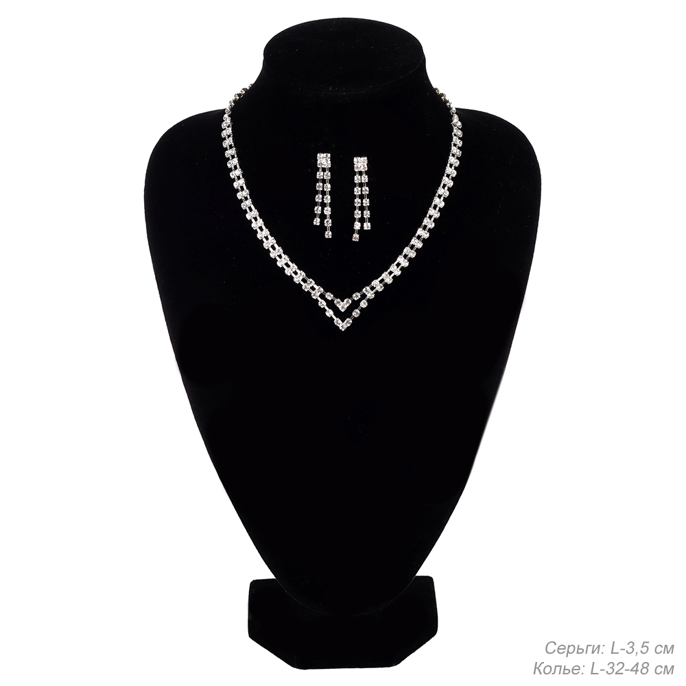 Колье со стразами и серьги гвоздики 3,5 см / 6771 /уп 6/серебро