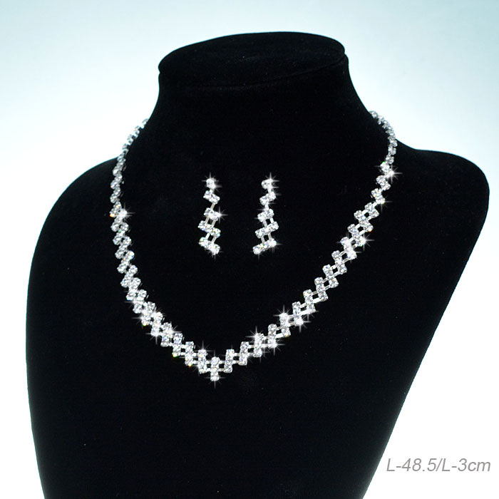 Колье со стразами и серьги гвоздики 3 см / 6225 /уп 12/серебро