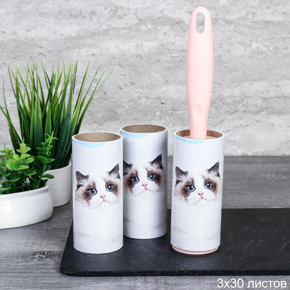 Щетка для одежды роликовая и сменный ролик 3х30 листов / 10-4 /уп 96/микс/OPP