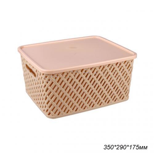Корзина 350х290х175 Плетенка / М3557 /уп 8/ бежевая с крышкой