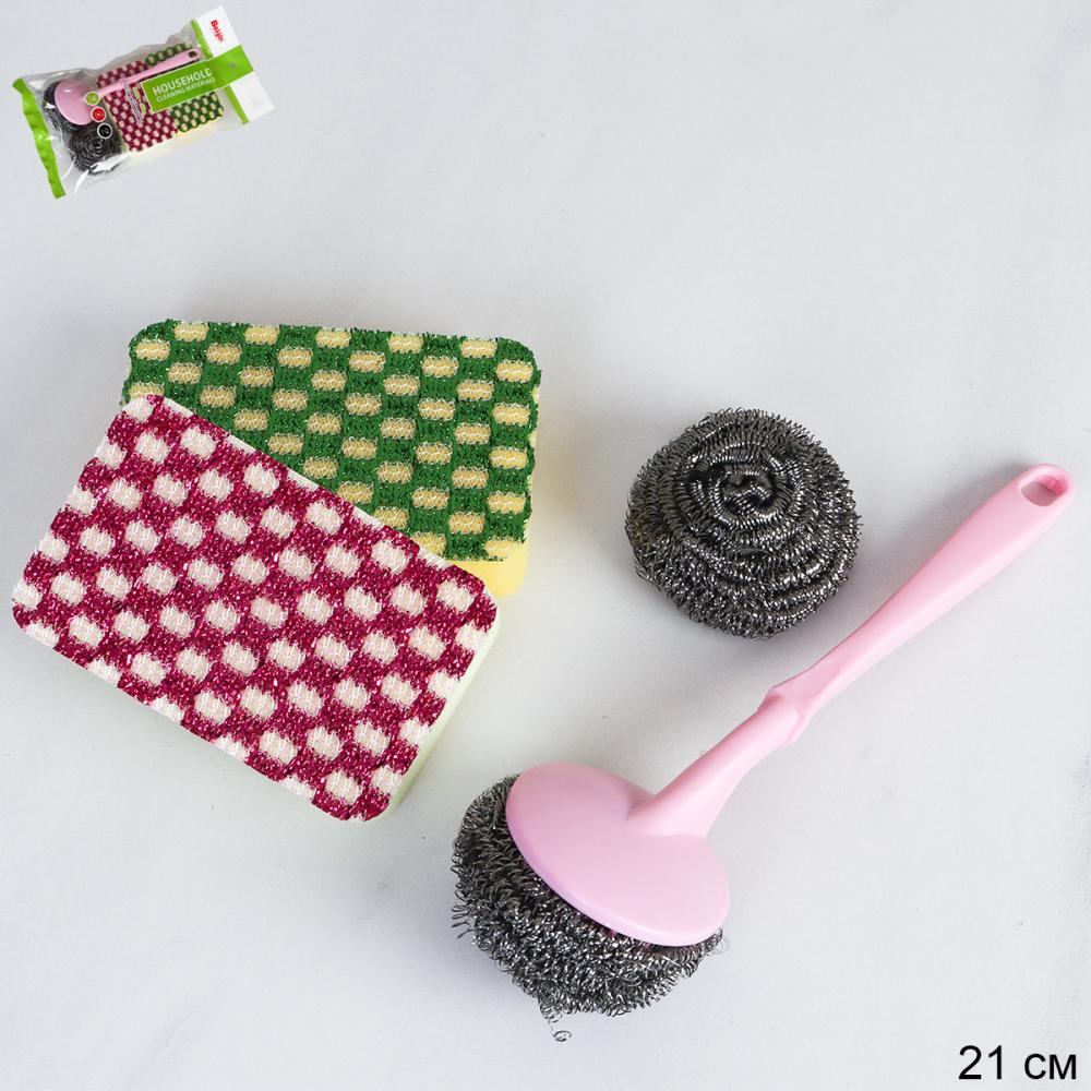 Щетка с ручкой универсальная 20 см набор / BJ-1640 /уп 200/+2 губки+мет.губка