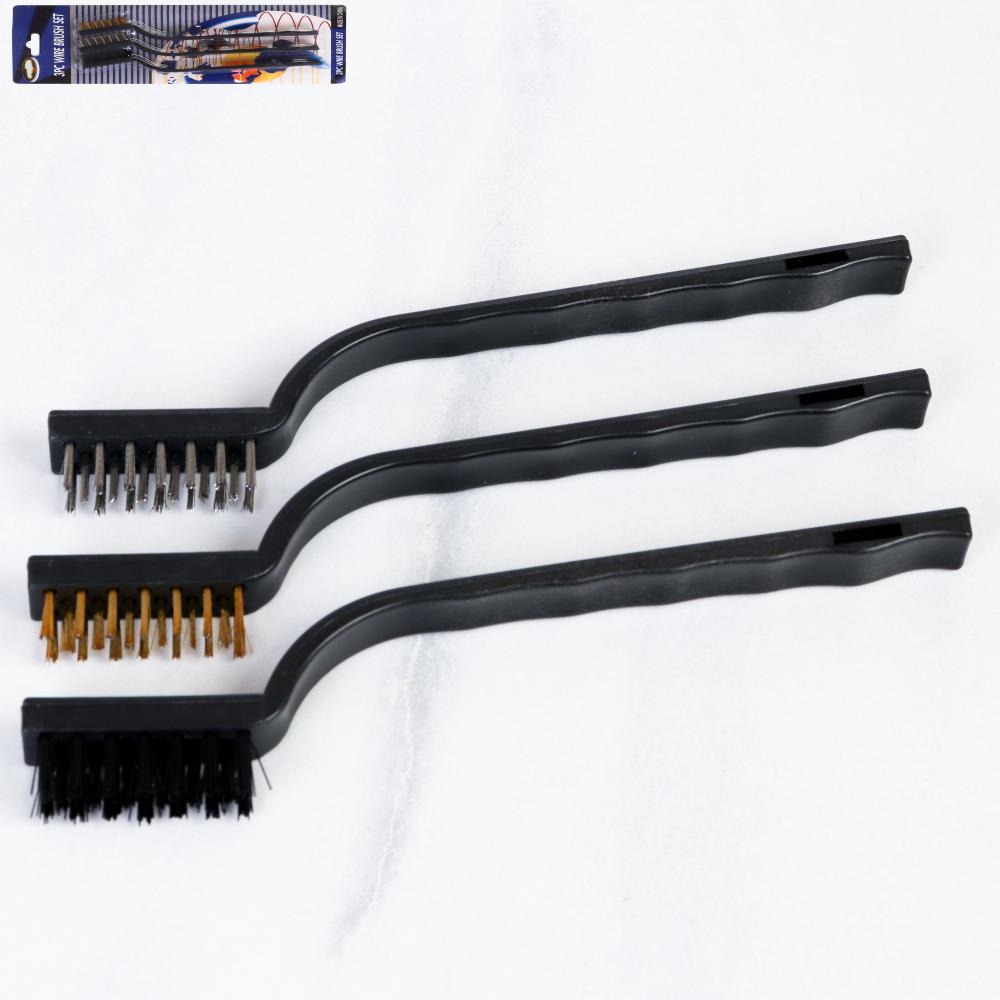 В наборе 2 щетки имеют металлическую щитину, одна щетка мягкая.