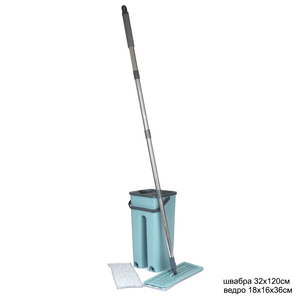Ведро с вертикальным отжимом и шваброй Моп / S2-1 /уп 24/ голубой/2 насадки