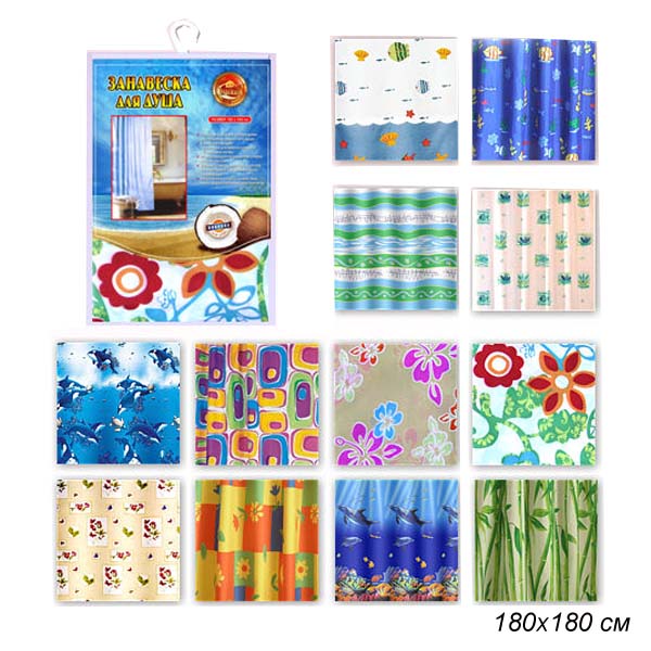Штора для ванной 180х180 см / CH34-86 /уп 36/ микс