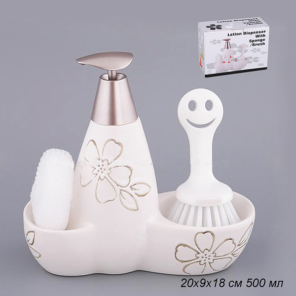 Дозатор для моющего средства 500 мл с губкой и щеткой 20х9х18 см / 755-069 /уп 12/