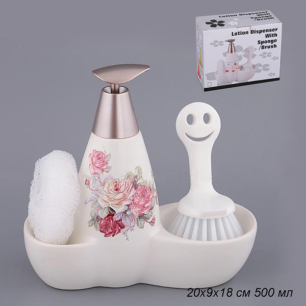 Дозатор для моющего средства 500 мл с губкой и щеткой 20х9х18 см / 755-079 /уп 12/