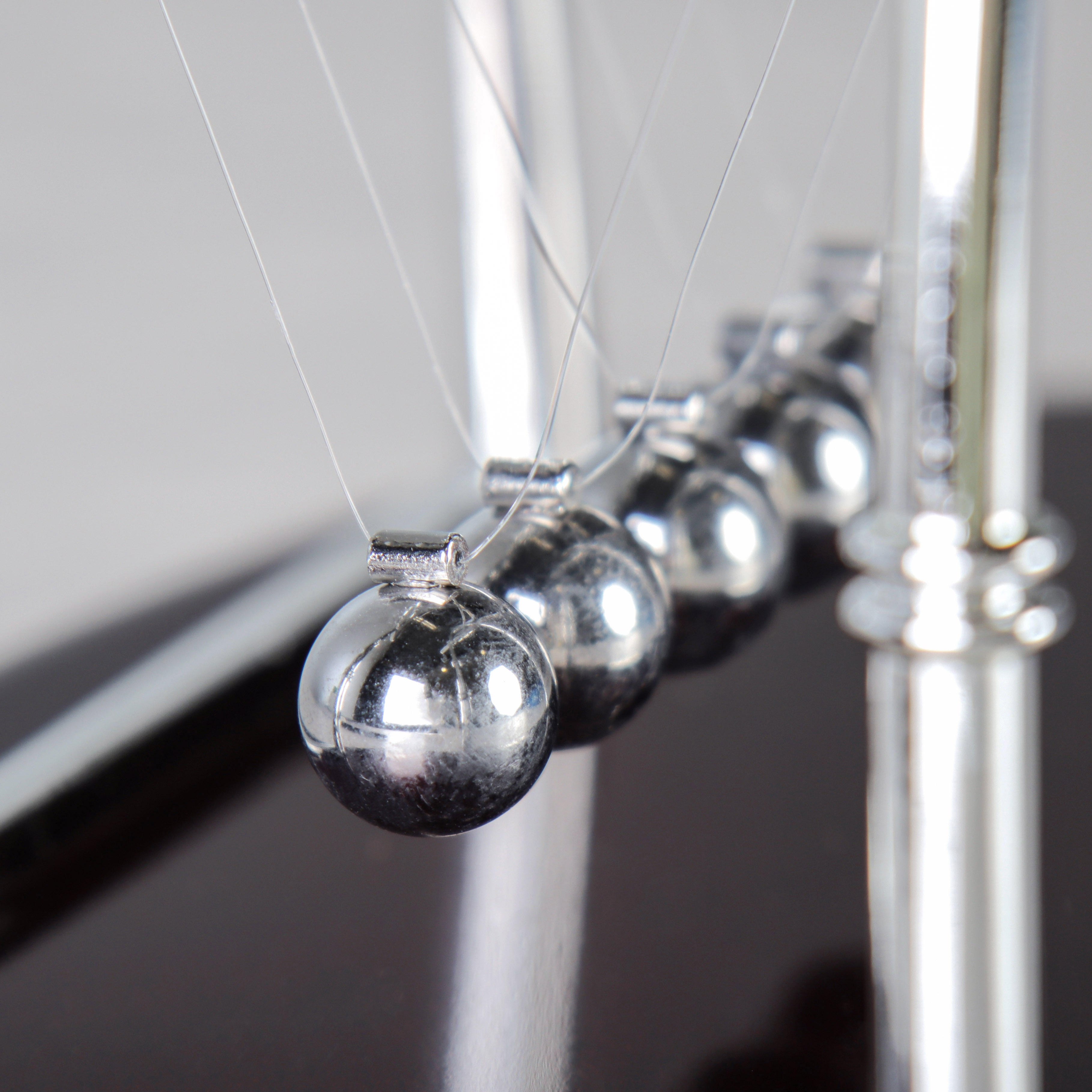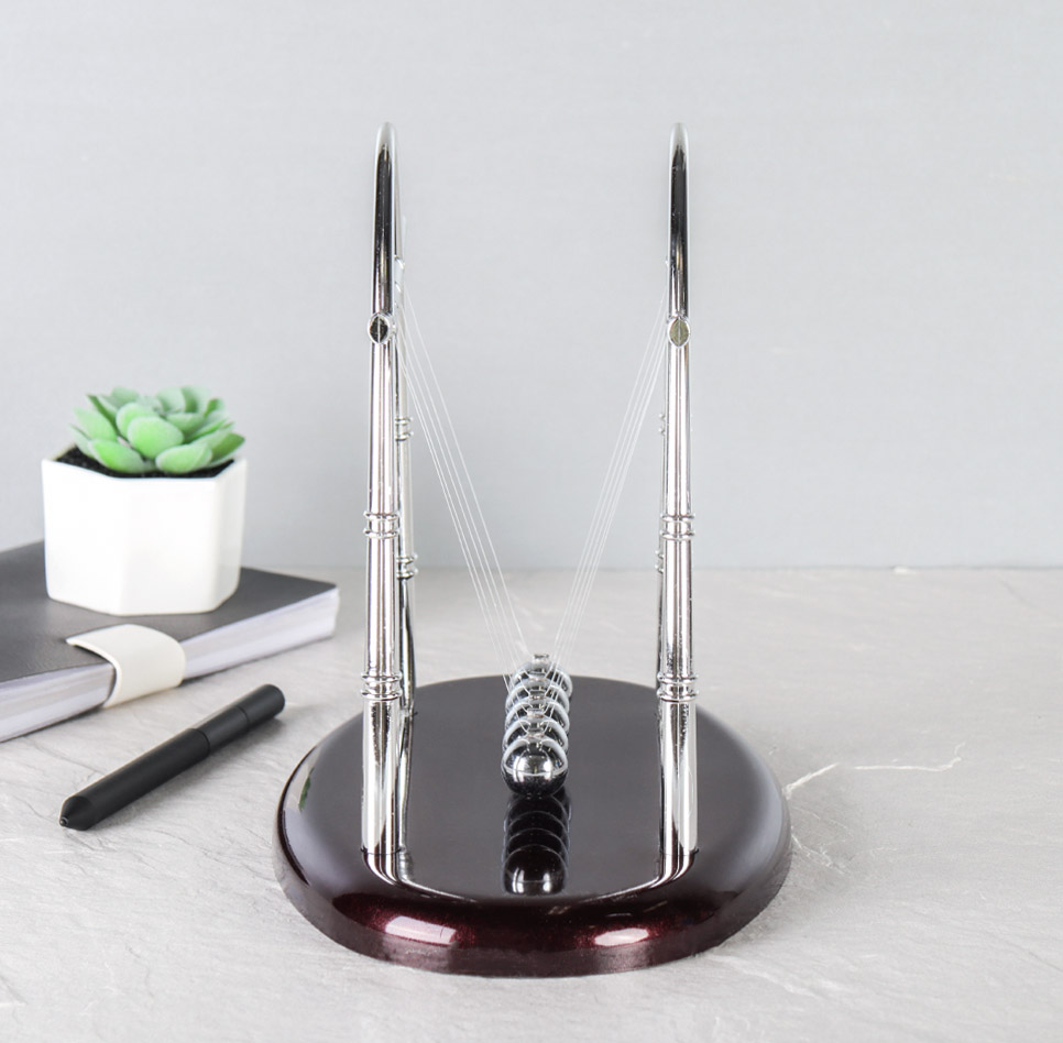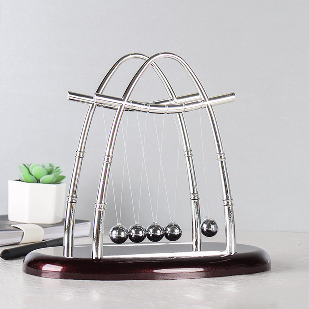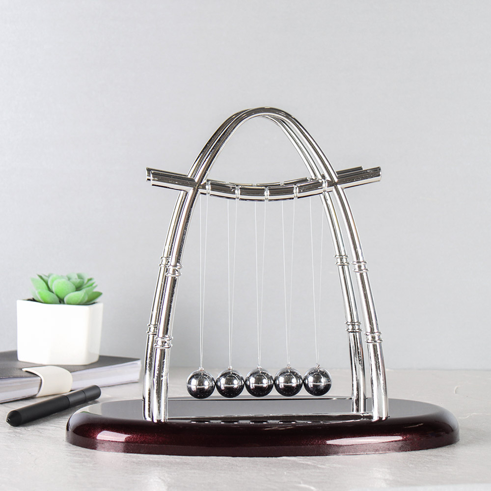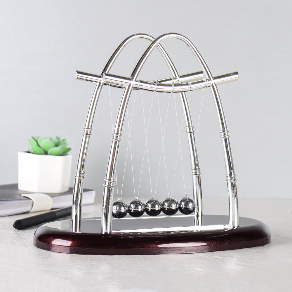 Маятник на квадратной подставке, бордовый, сегодня пользуется огромной популярностью у наших клиентов. Система состоит из подставки и пяти металлических шариков, которые подвешены на леске. Для активации маятника вам необходимо отвести один шарик в сторону и отпустить его. Затем наблюдайте, как шарики с противоположной стороны начинают двигаться в зеркальном отображении с той же скоростью. Через определенное время шарики останавливаются. Продолжительность движения зависит от размера и веса шариков: чем тяжелее и больше шарики, тем дольше процесс, и наоборот.