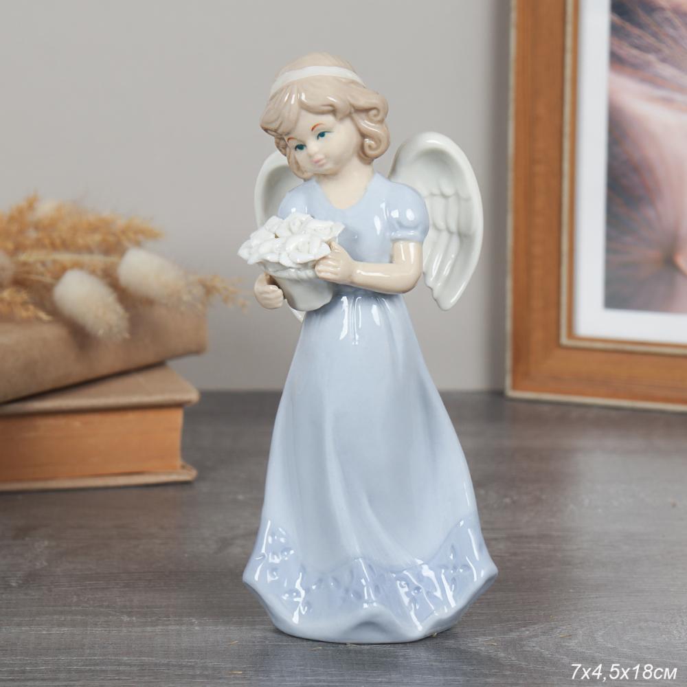 Фигурка Ангел 18 см голубое платье / YZ015029 /уп 36/фарфор