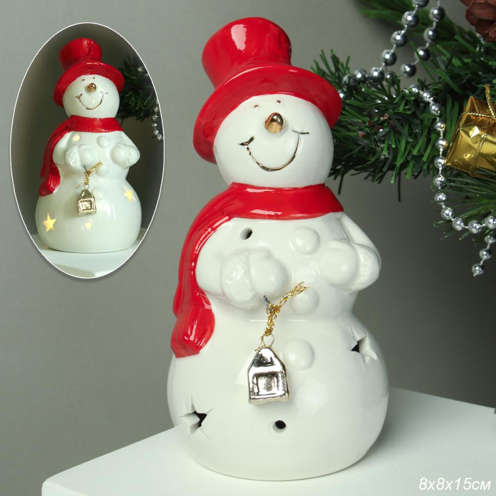 Фигурка Снеговик с подсветкой 15 см новогодний / FP23603 /уп 48/LED фарфор