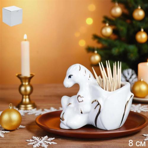 Подставка для зубочисток Лошадь 8 см / B5448 /уп 144/ Символ года 2026 костяной фарфор