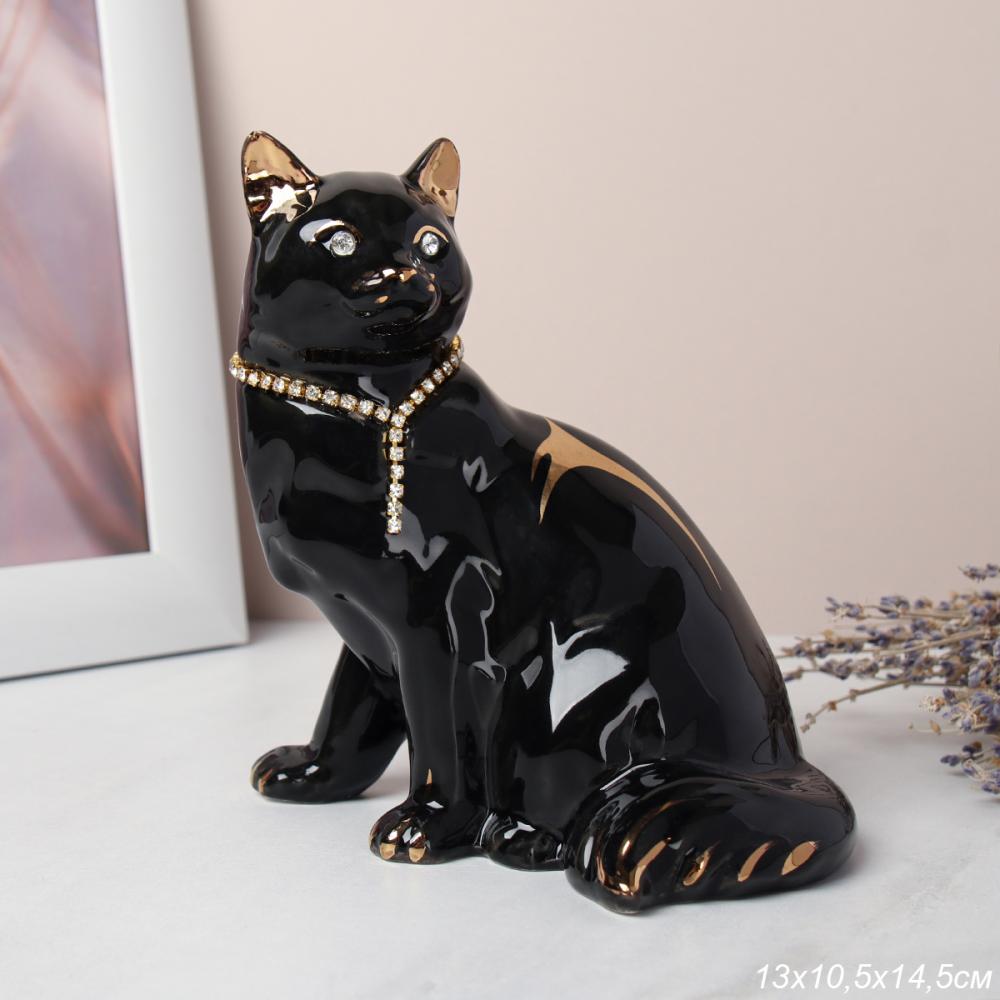 Статуэтка Кошка черная 14,5 см / B3014-4A /уп 24/стразы