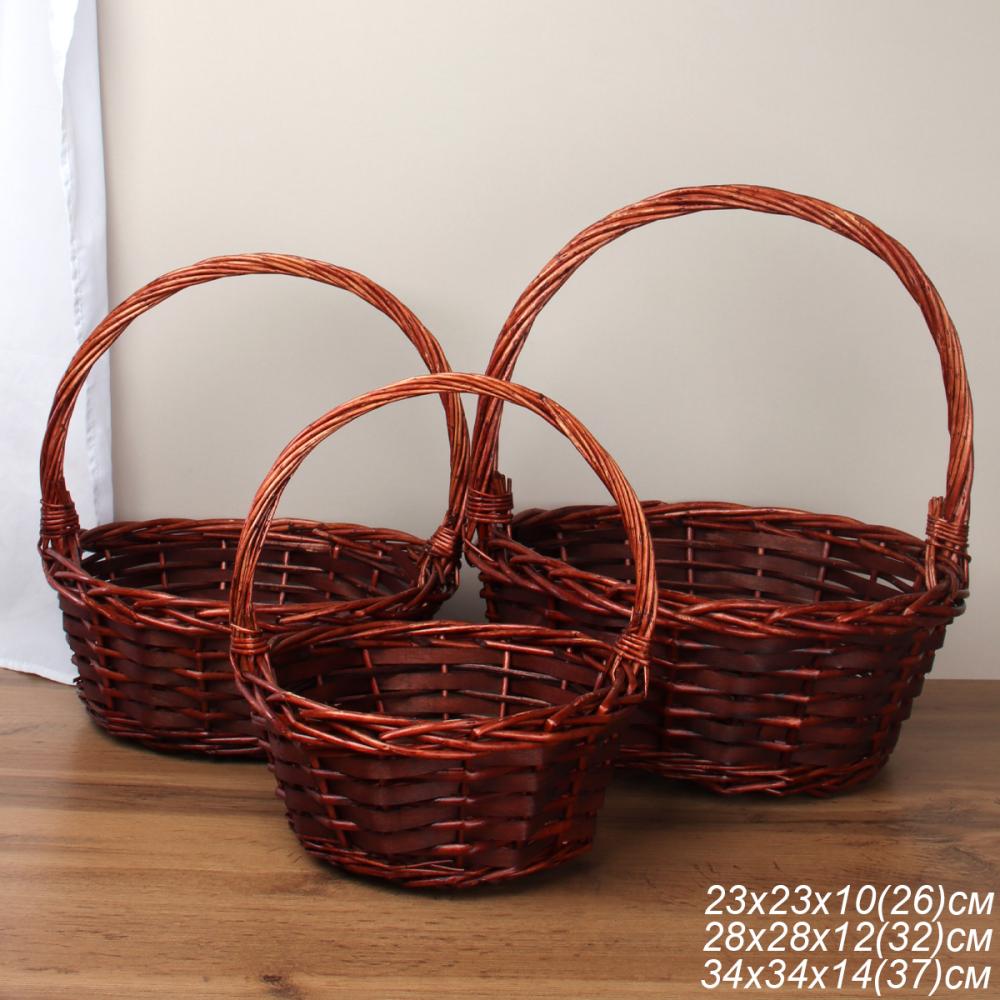 Корзина плетеная 3 штуки 34х34х14/28х28х12/23х23х10 см / S/3 22-41 /уп 28/круглая 734765