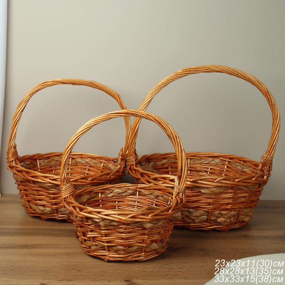 Корзина плетеная 3 штуки 33х33х15/28х28х13/23х23х11 см / S/3 22-38 /уп 28/светло коричневая круглая