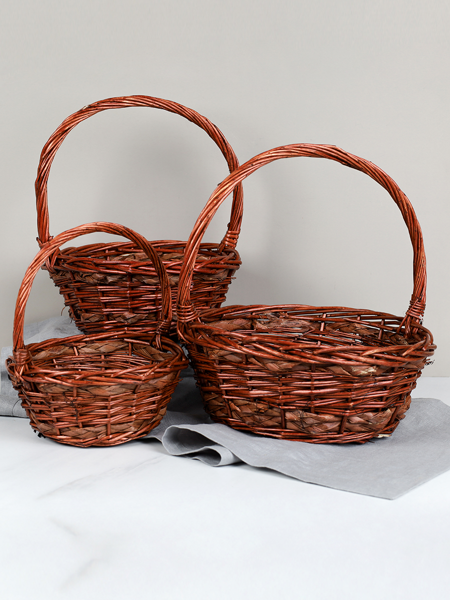 Корзина плетеная 3 штуки 33х12/27х10/22х9 см / S/3 22-39-KR /уп 28/темно коричневая круглая