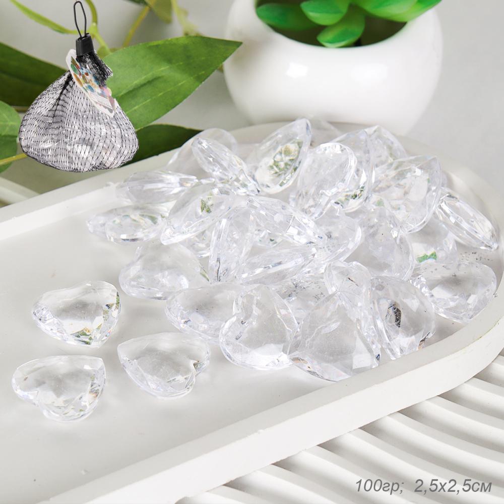 Декоративные камни 100г Сердце прозрачное / XM-91A /уп 200/ пластик