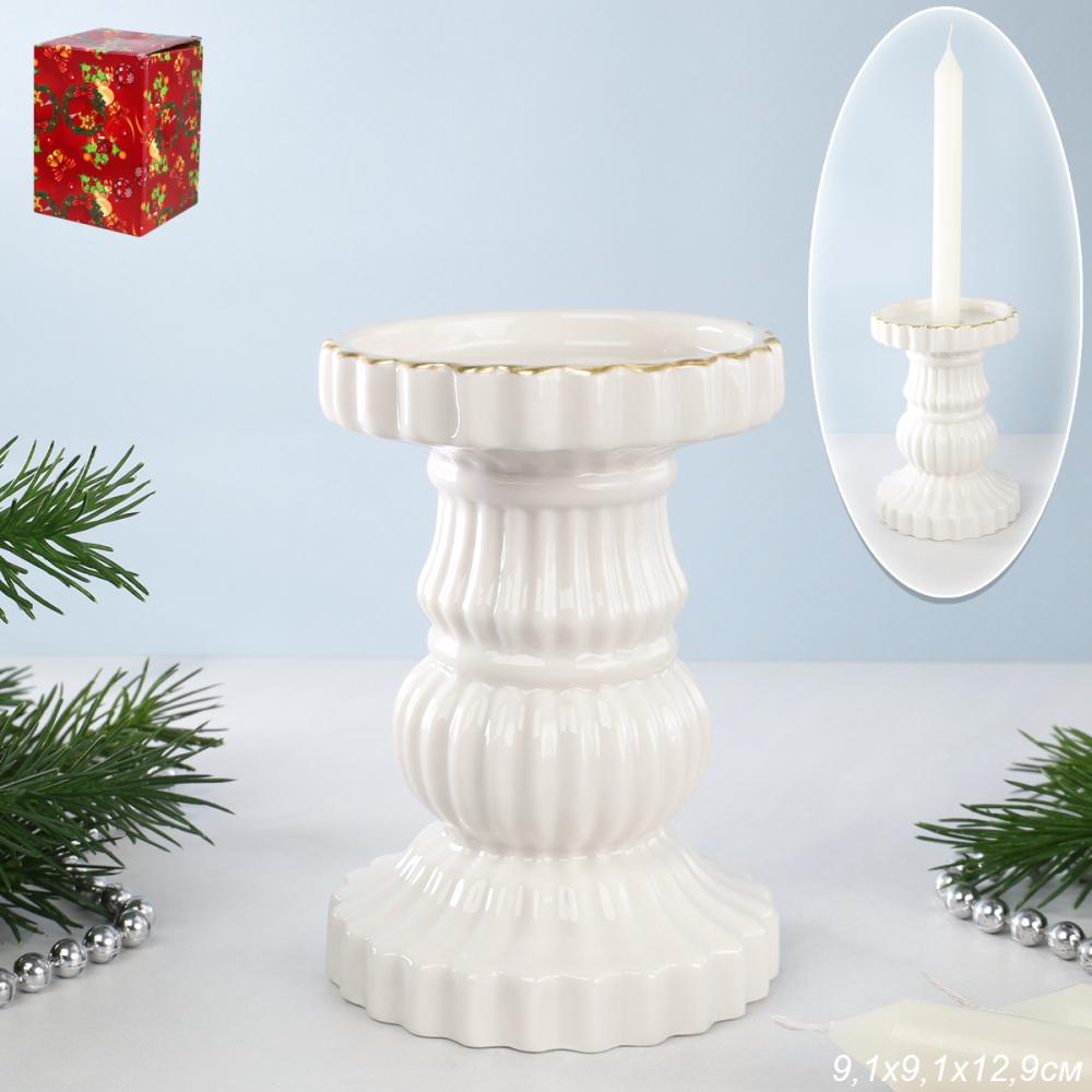 Подсвечник 9,1х9,1х12,9 см белый / 7093 /уп 36/керамика