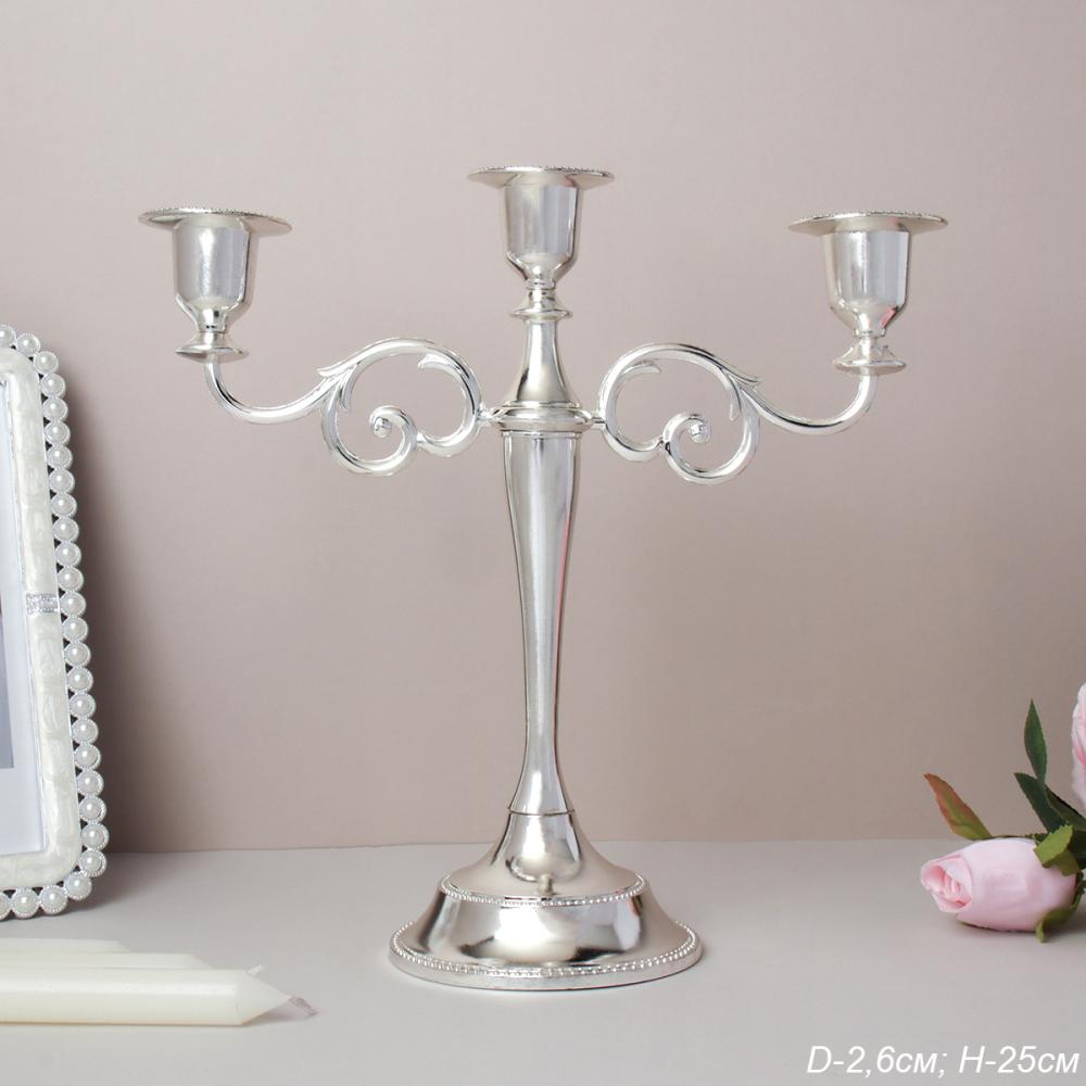 Подсвечник на 3 свечи 25 см серебро / 6303Q /уп 30/
