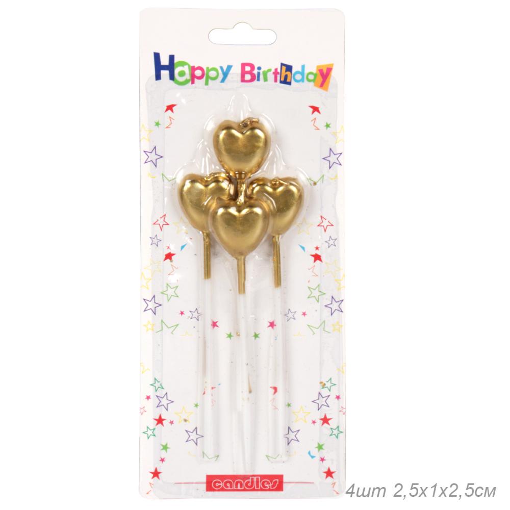 Свеча 4 штуки Сердце набор / GT-6gold /уп 24/360/ золото