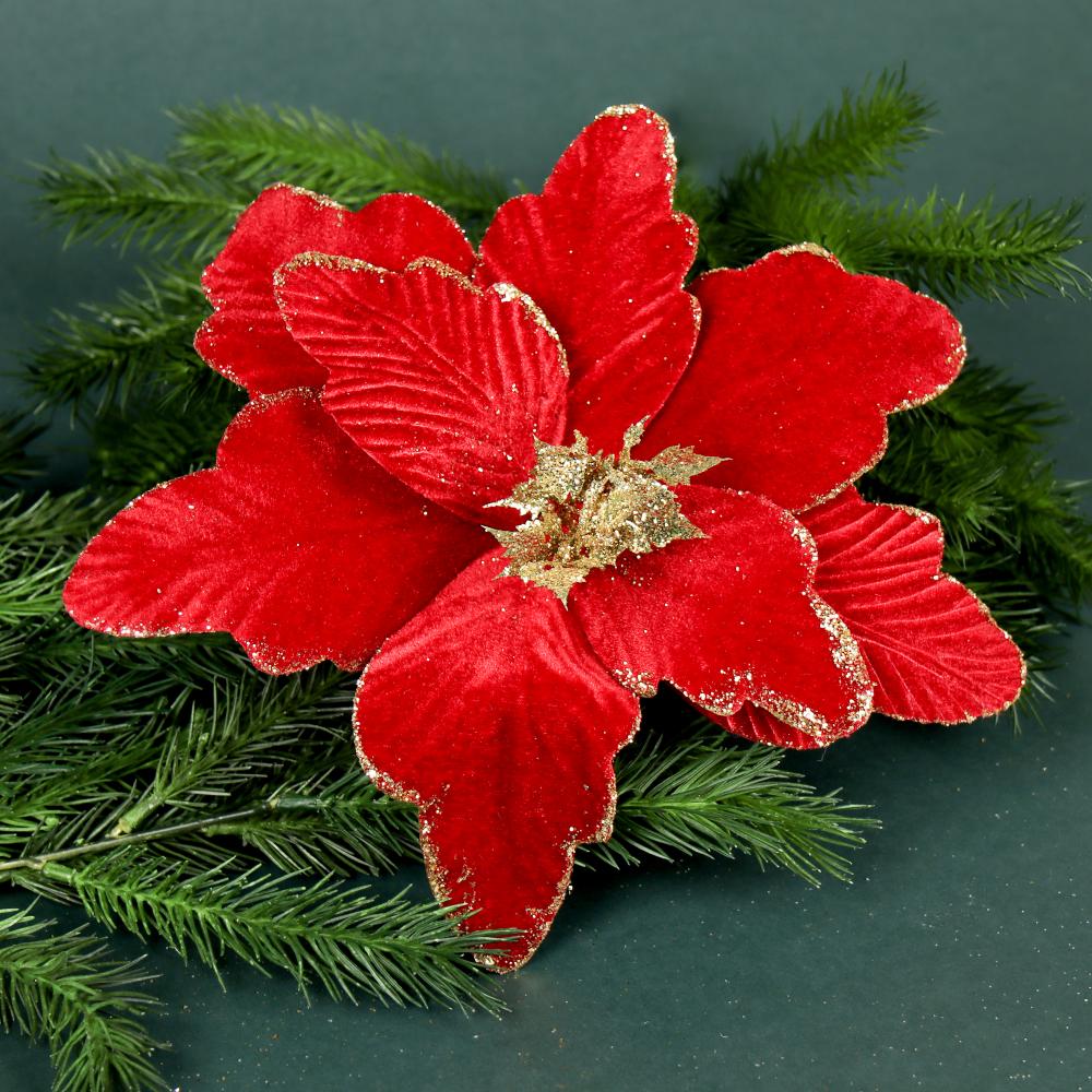 Цветок декоративный Пуансеттия красная 20 см / CTX12-116 /уп 80/480/