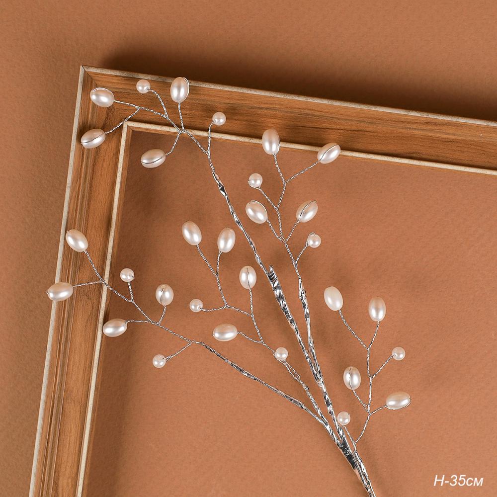 Ветка декоративная стеклярус 35 см / SA23703 /уп 720/серебро жемчуг*