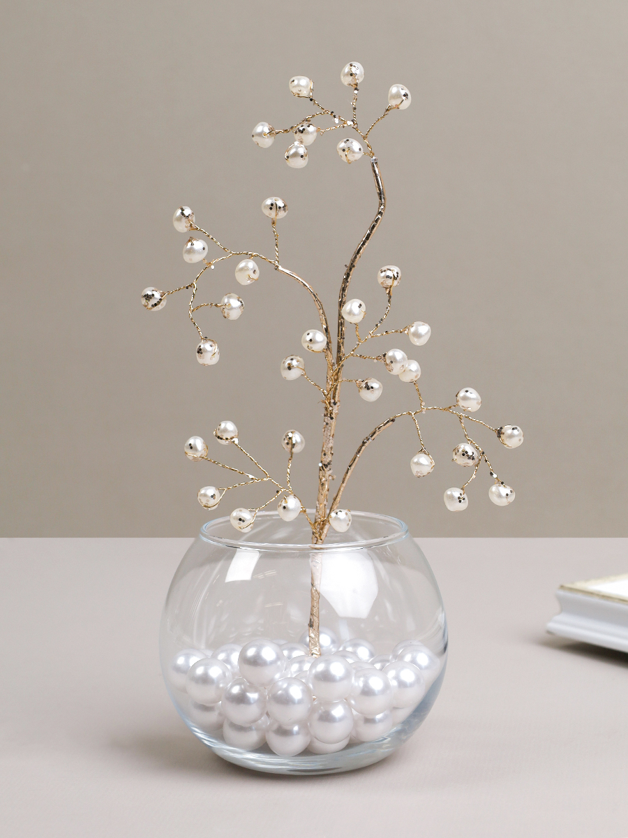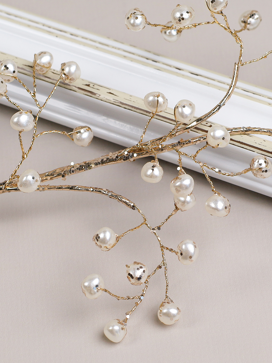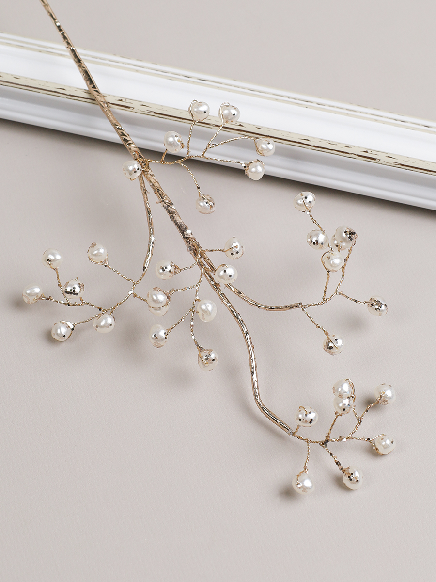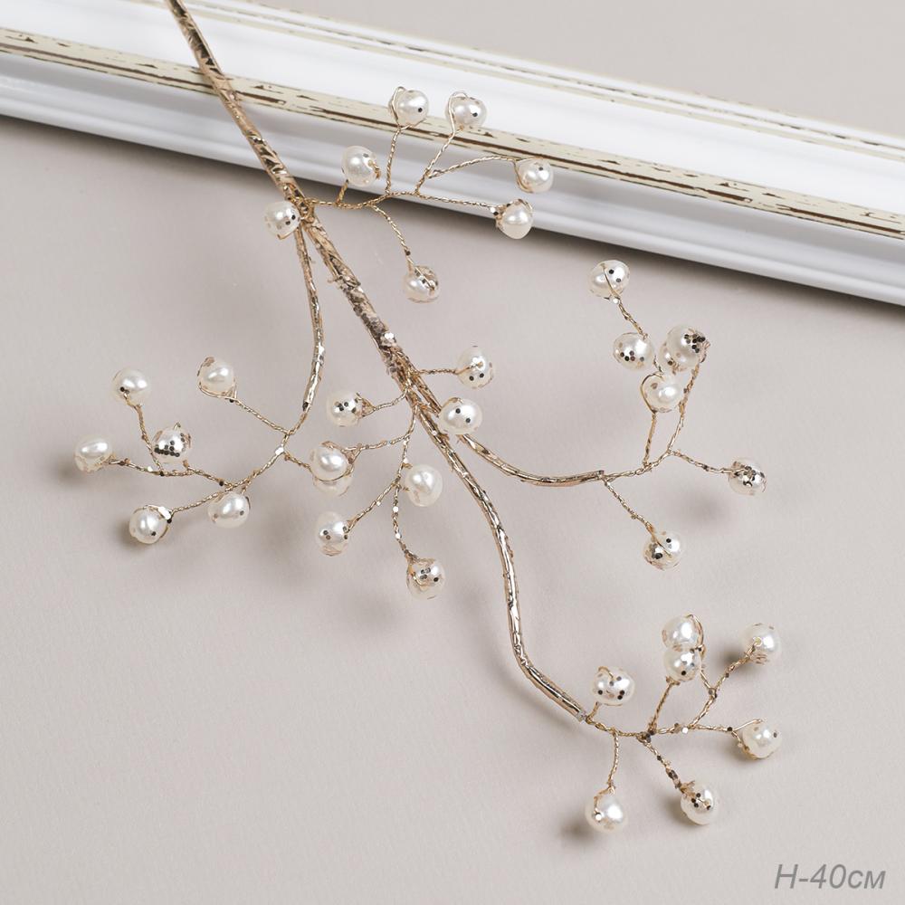 Ветка декоративная стеклярус 40 см / CW0427-14 /уп 725/ 35 жемчужина