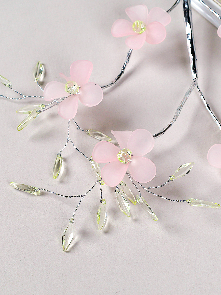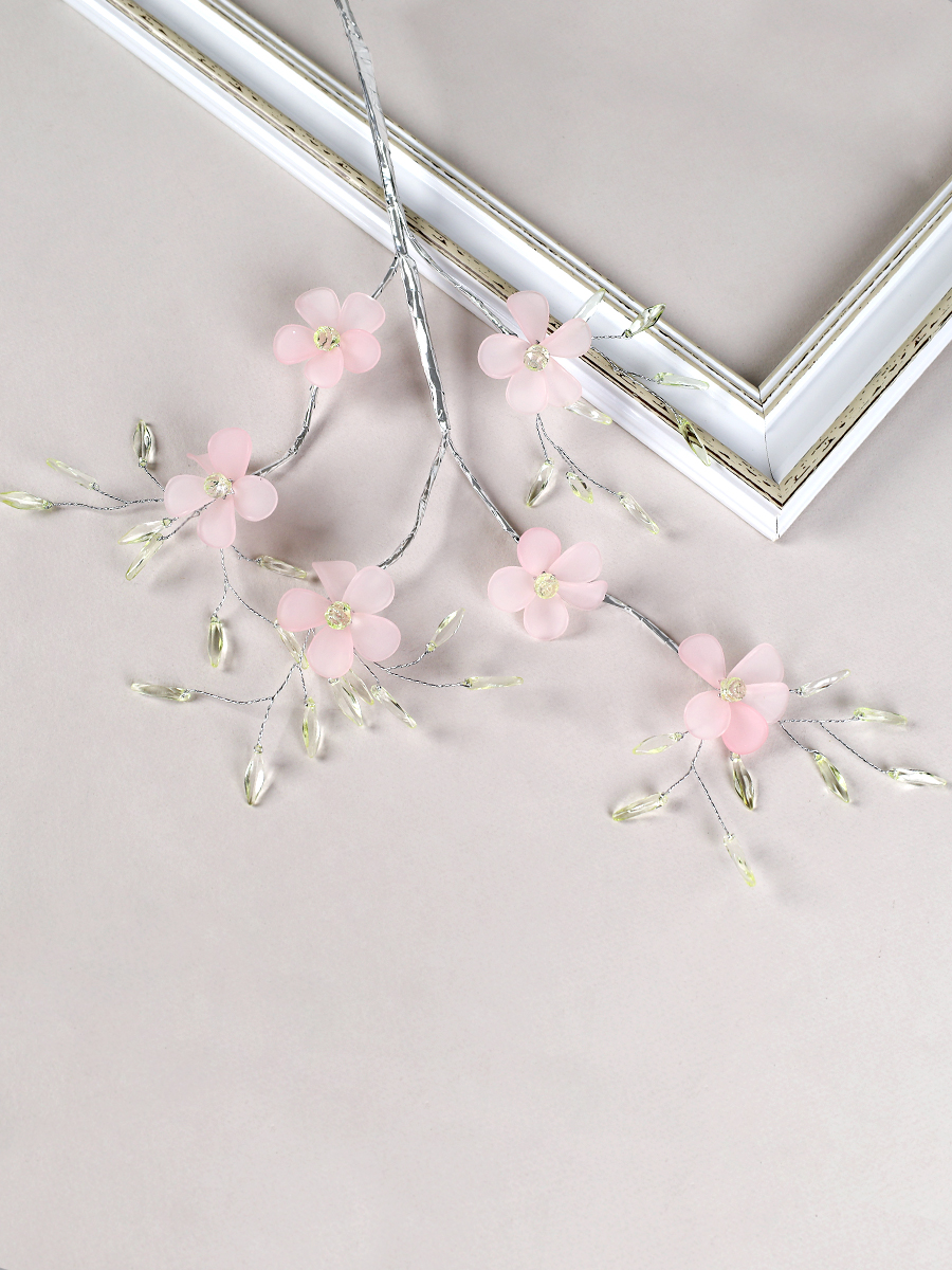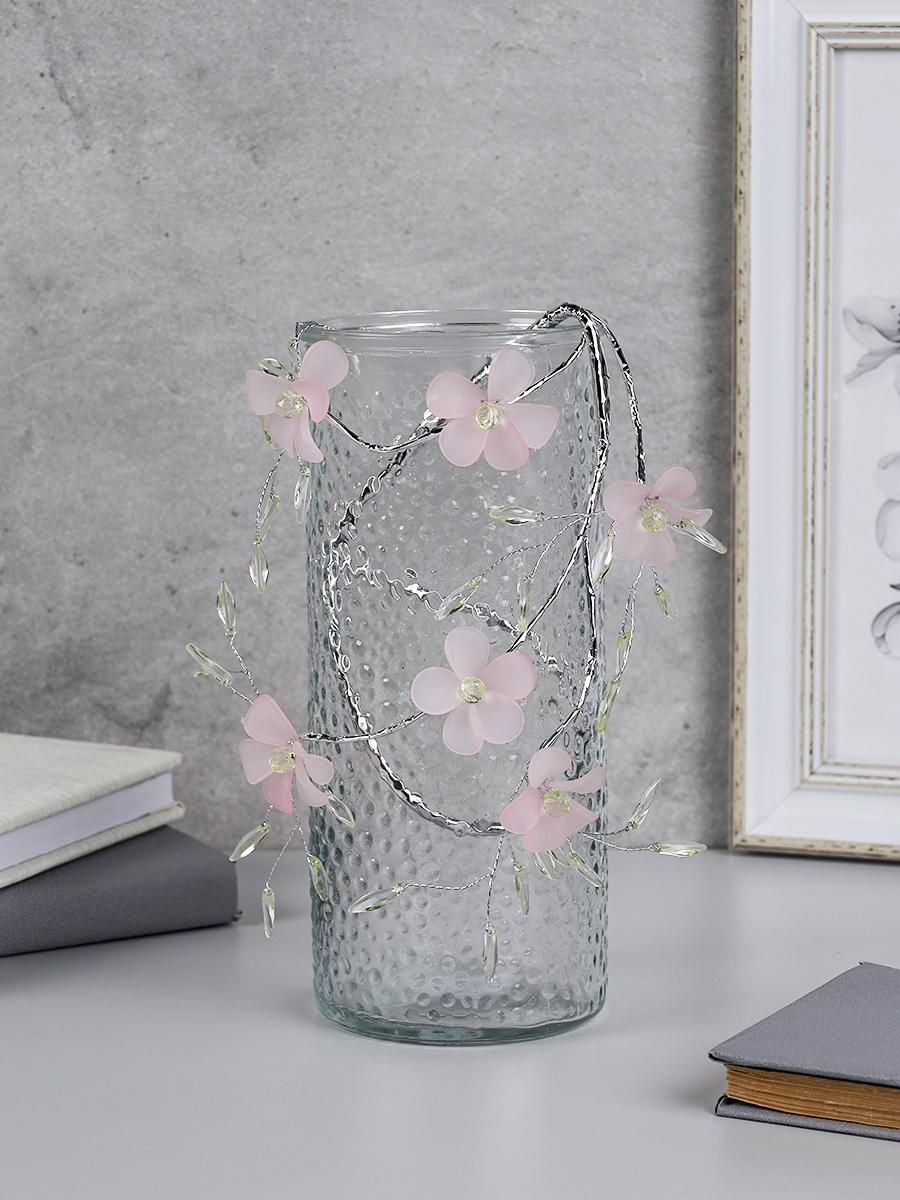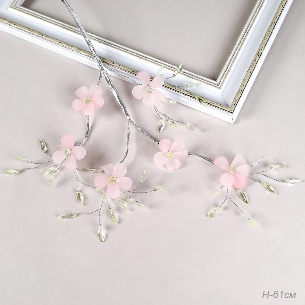 Ветка декоративная стеклярус 61 см Розовые цветы / SA24217 /уп 360/