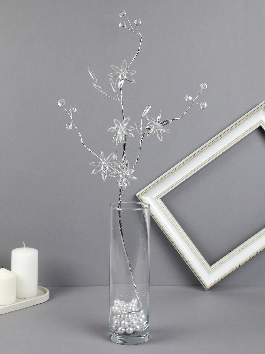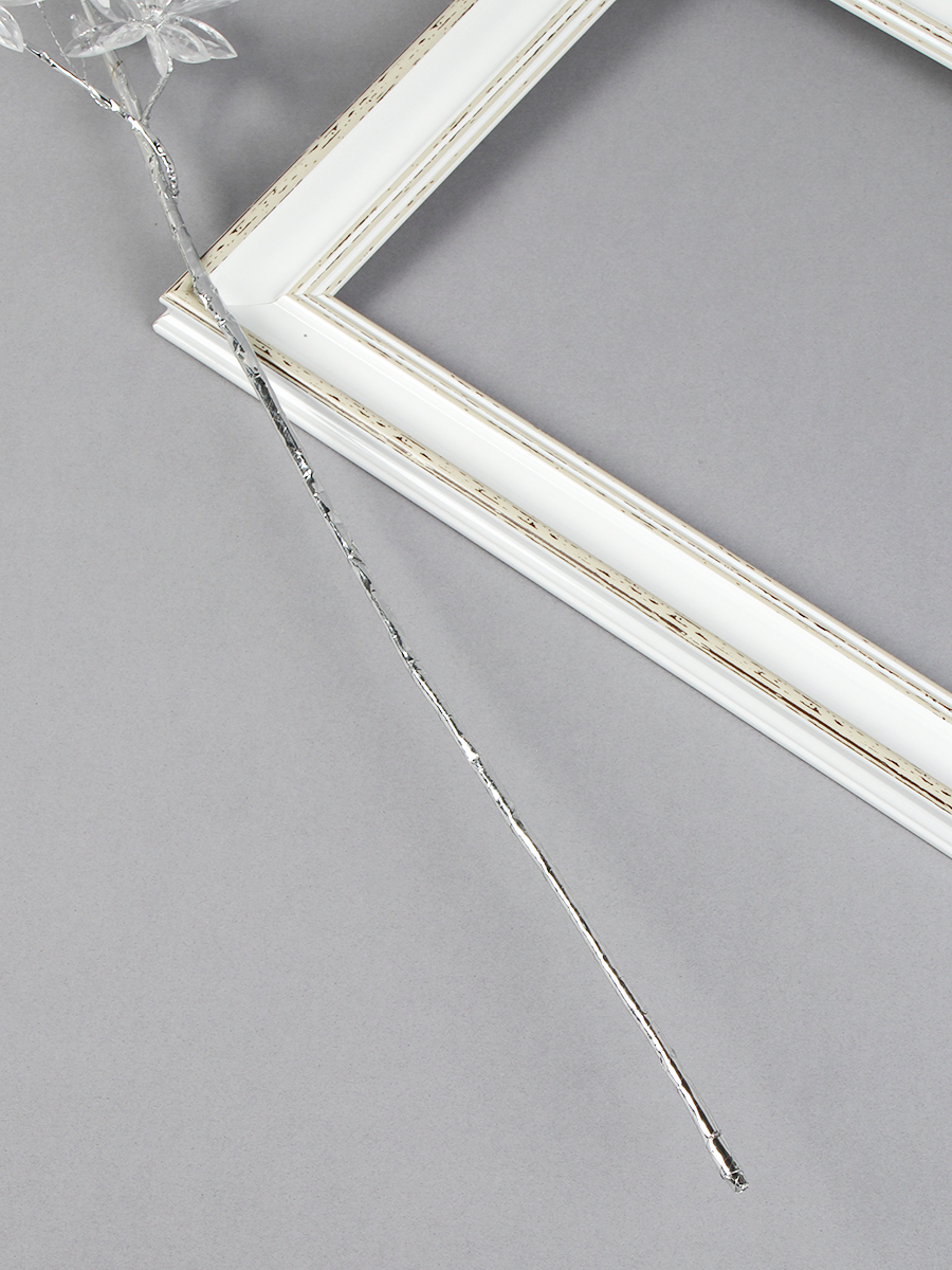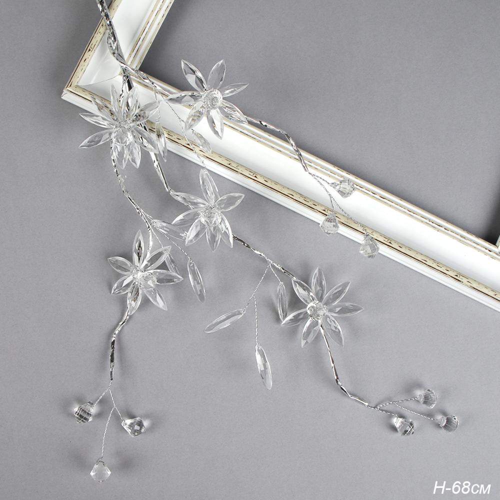 Ветка декоративная стеклярус 68 см 5 цветков / SA15807 /уп 360/серебро