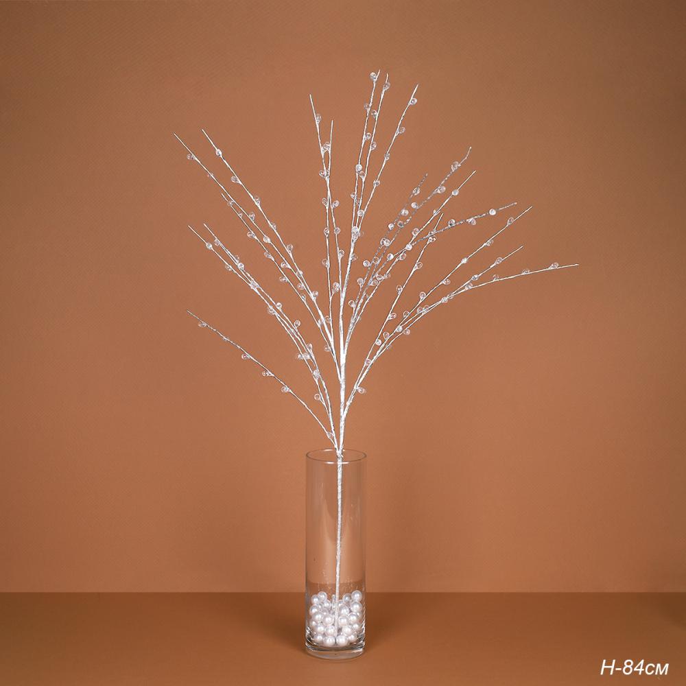 Ветка декоративная стеклярус 84 см / MA694 /уп 80/240/серебро