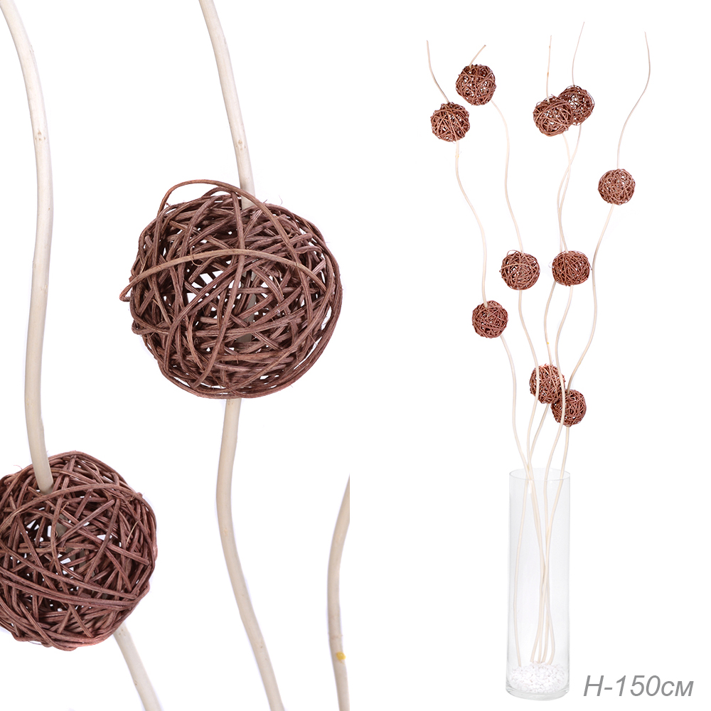 Сухоцвет набор 5 штук 150 см (китте 8 см.10 шт) / 0410-8 / коричневые шары на белом (большой размер китте)