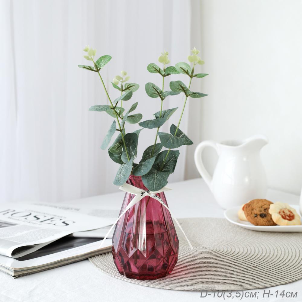Ваза для цветов 14 см розовая с лентой / WRD-100 /уп 45/ без индивидуальной упаковки