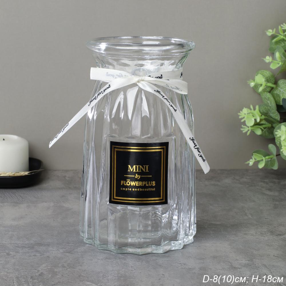 Ваза для цветов 18 см прозрачная с лентой этикетка / WRD-141 /уп 30/ без и/уп