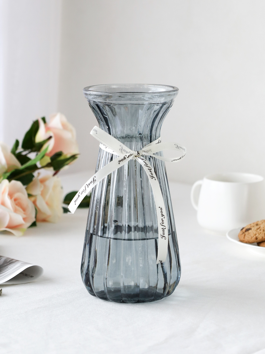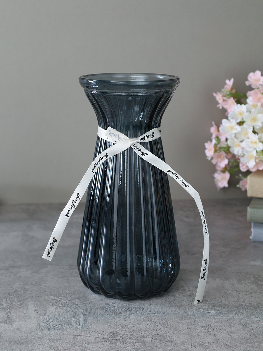 Ваза для цветов 22 см серая с лентой / WRD-147 /уп 30/ без и/уп