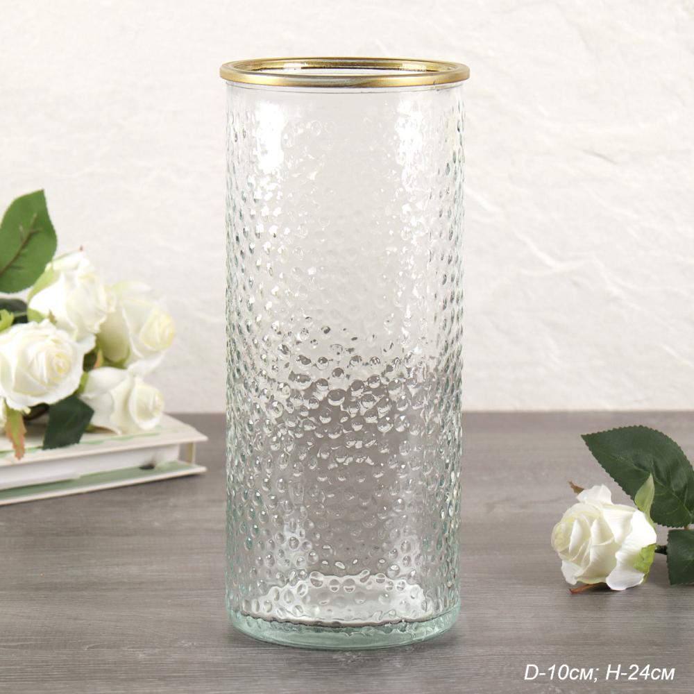Ваза для цветов 24 см прозрачная с золотой каймой / WRD-112 /уп 24/ без и/уп