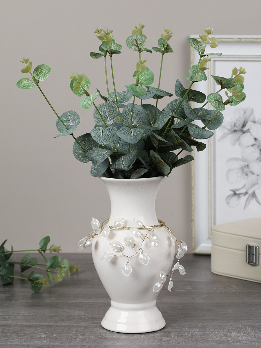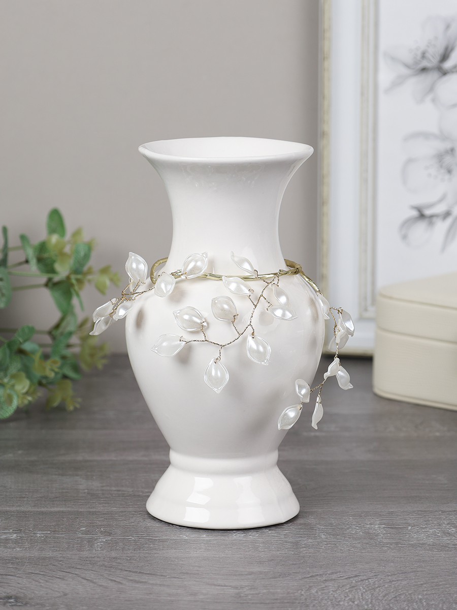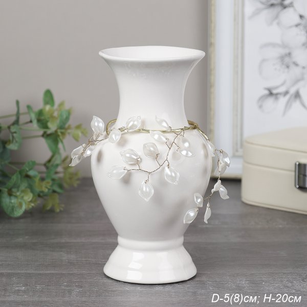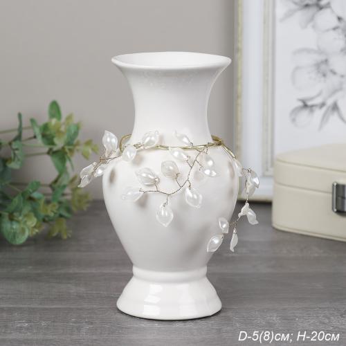 Ваза 20 см со СТЕКЛЯРУСОМ белая Амфора / WRF-74+CW0427-4 /уп 18/без и/уп