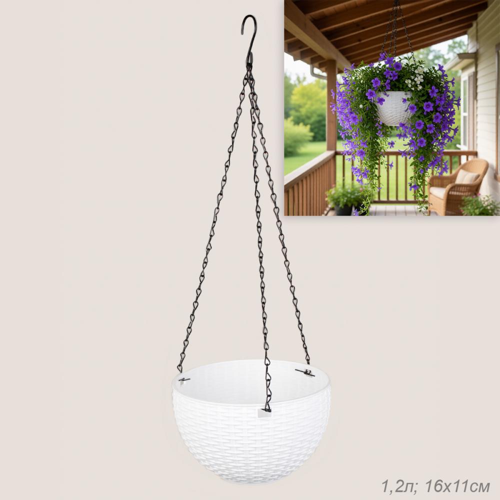 Кашпо подвесное пластик 16х11 см БЕЛЫЙ 1,2 литра / P7207 /уп 160/753929