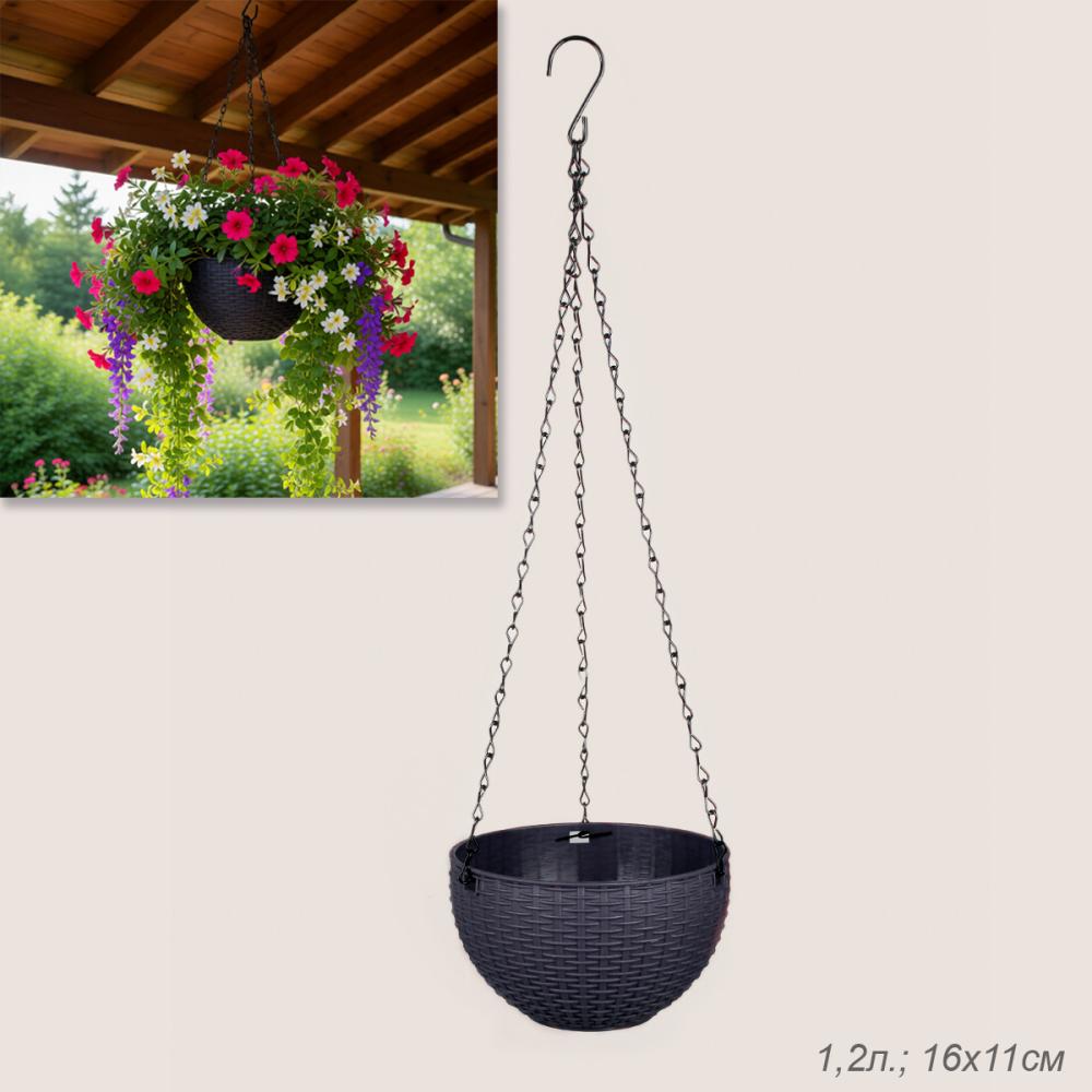 Кашпо подвесное пластик 16х11 см ЧЕРНЫЙ 1,2 литра / P7207 /уп 160/753929