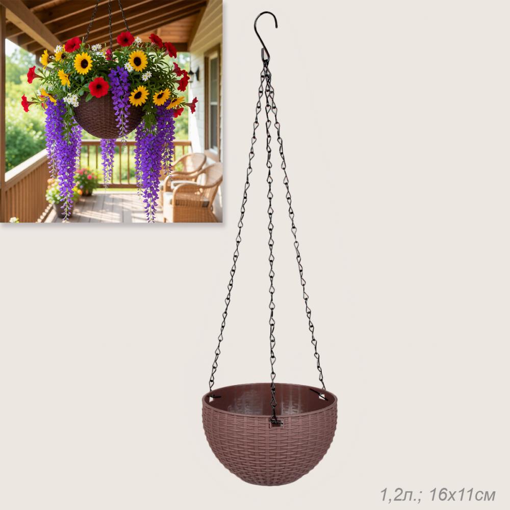 Кашпо подвесное пластик 16х11 см КОРИЧНЕВЫЙ 1,2 литра / P7207 /уп 160/753929