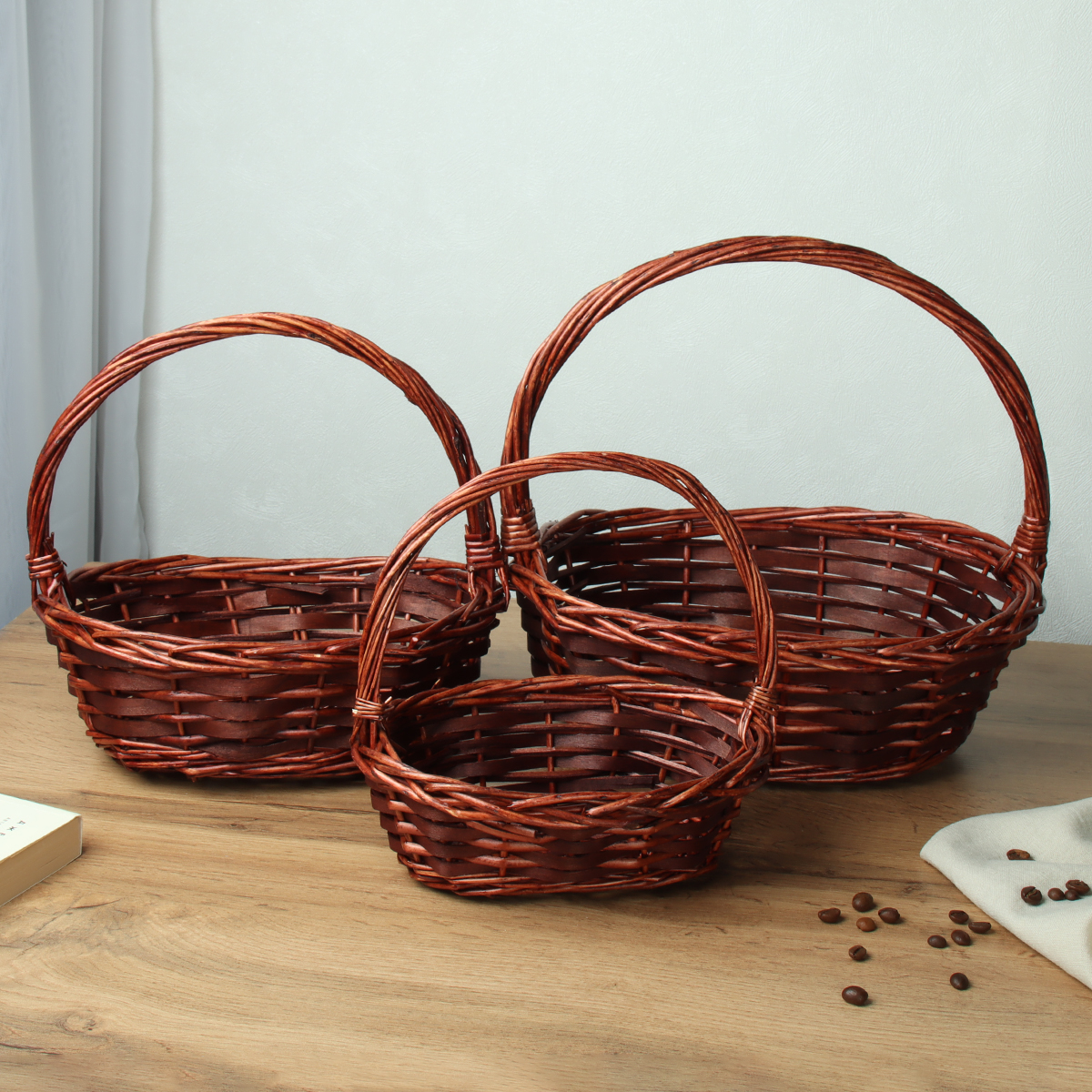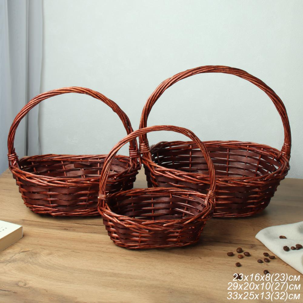 Корзина плетеная 3 штуки набор 32х24х10/26х20х9/20х14х7 см / S/3 22-41 /уп 40/овал