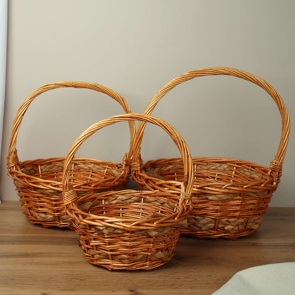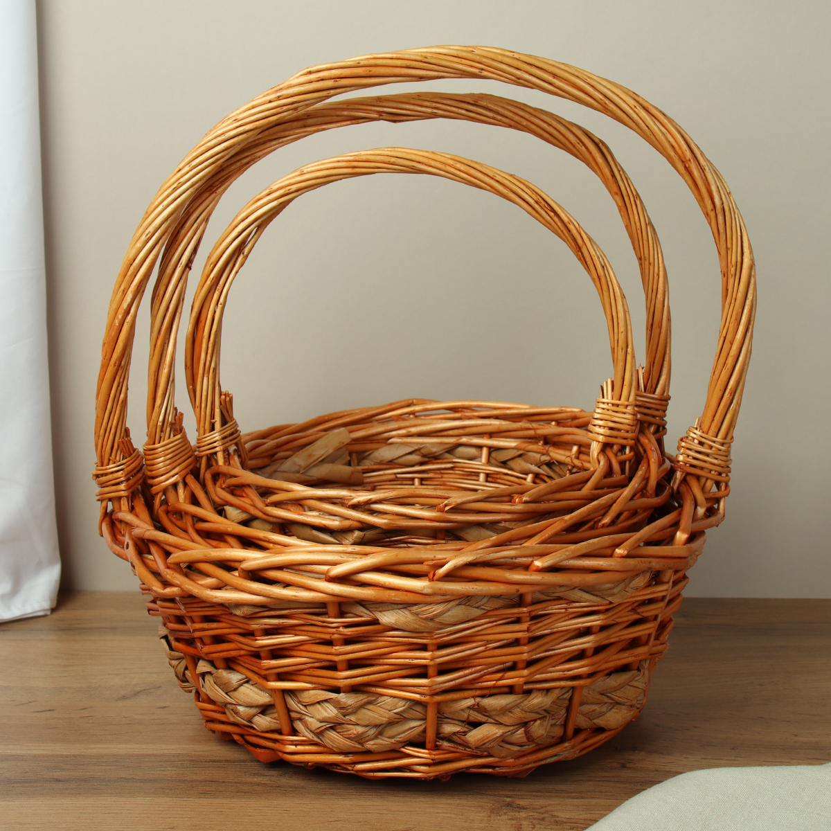 Корзина плетеная 3 штуки 33х12/27х10/22х9 см / S/3 22-38 /уп 28/светло коричневая круглая