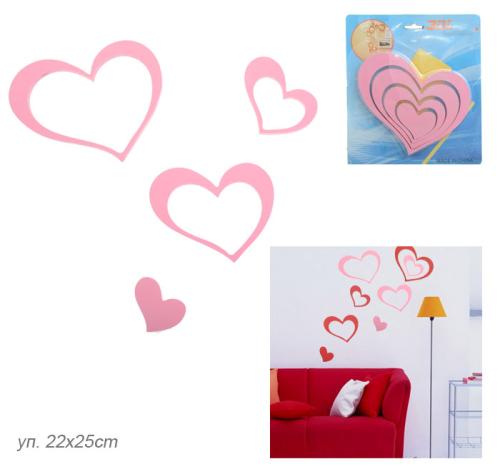 Наклейка 3D на стену из дерева розовая / 8058 / сердечки АКЦИЯ