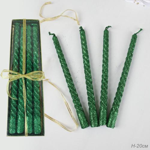 Свеча стержень 4 штук 20 см набор / BQ-4 /уп 144/ зеленая