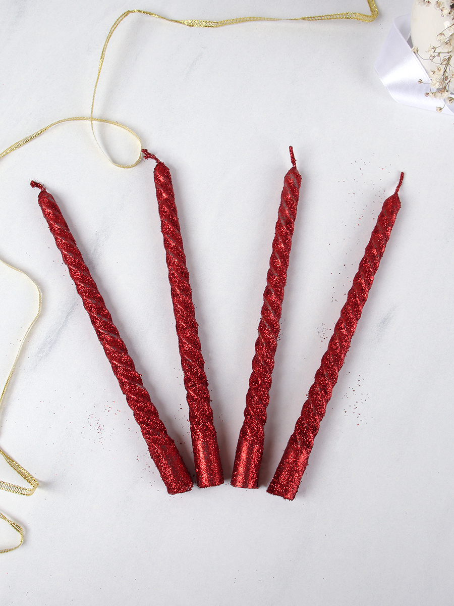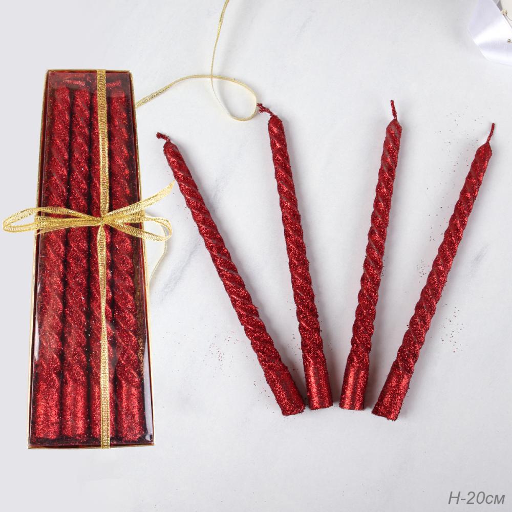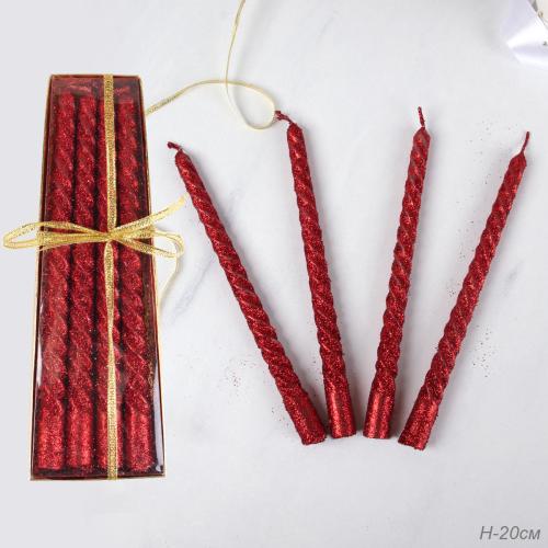 Свеча стержень 4 штук 20 см набор витая / BQ-3 /уп 144/ красная