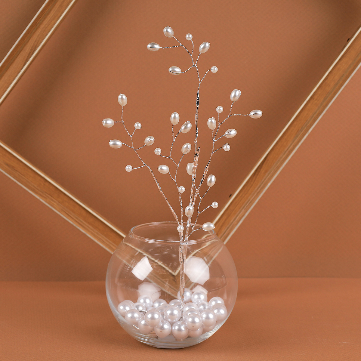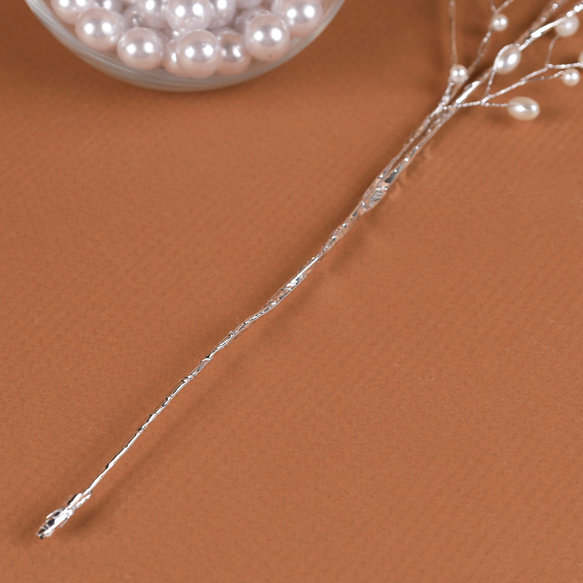 Ветка декоративная стеклярус 35 см / SA23703 /уп 720/серебро жемчуг